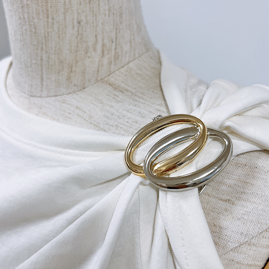 ゴールドとシルバーのリングを重ね合わせたようなモダンなデザイン。