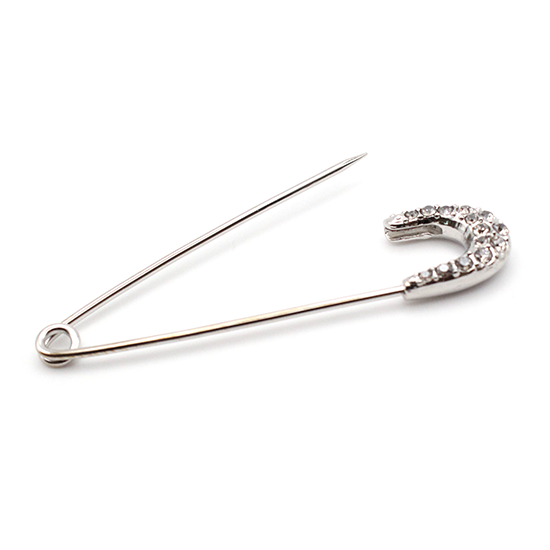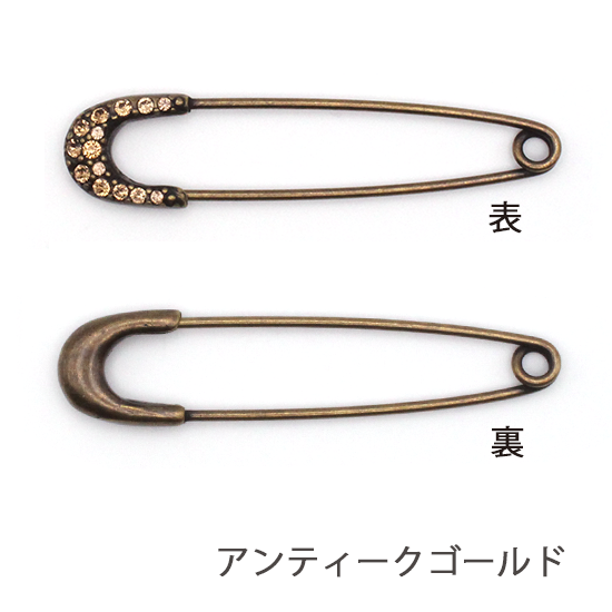 留め具部分にクリスタルガラスを散りばめた、使いやすい形のキルトピンです。